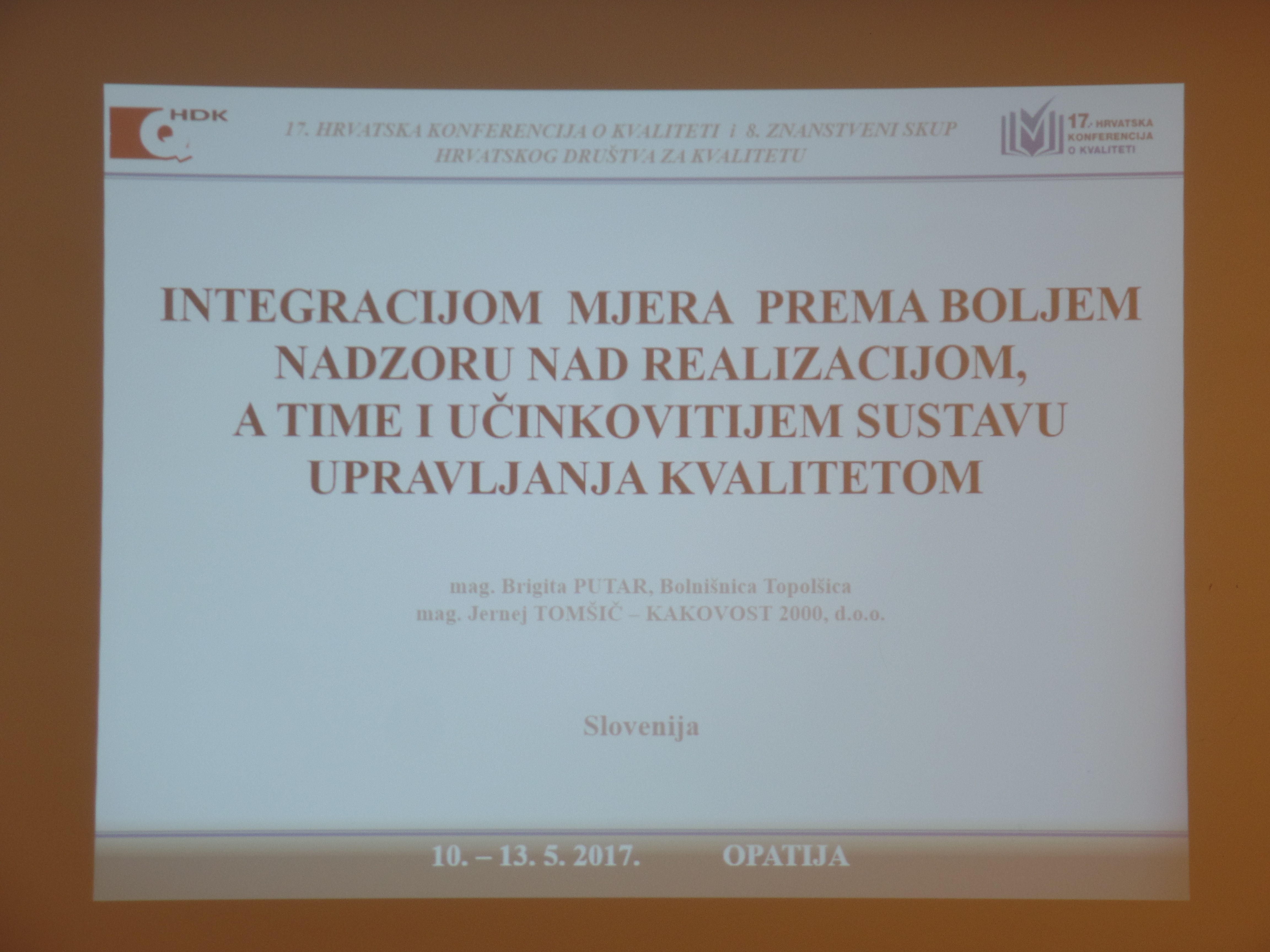 Mag. Jernej Tomšič je kot soavtor sodeloval na letošnji 17. hrvaški konferenci o kakovosti pri predstavljenem referatu "Z integracijo ukrepov do boljšega nadzora nad realizacijo in s tem do učinkovitejšega sistema vodenja kakovosti", skupaj z Brigito Putar. Konferenca je potekala v Opatiji med 11.5 - 13.5.2017.